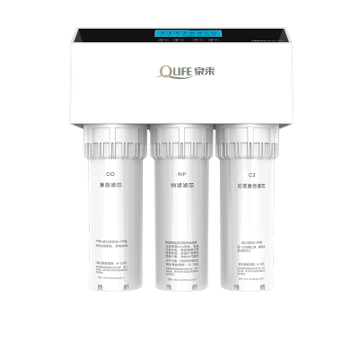 600G進口納濾膜、無桶設計,四級過濾(帶后置活性炭)、2級濾芯、3秒換芯,雙出水,集成水路板,智能龍頭